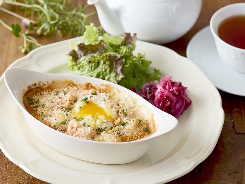 紅ずわい蟹と半熟卵のチーズドリア