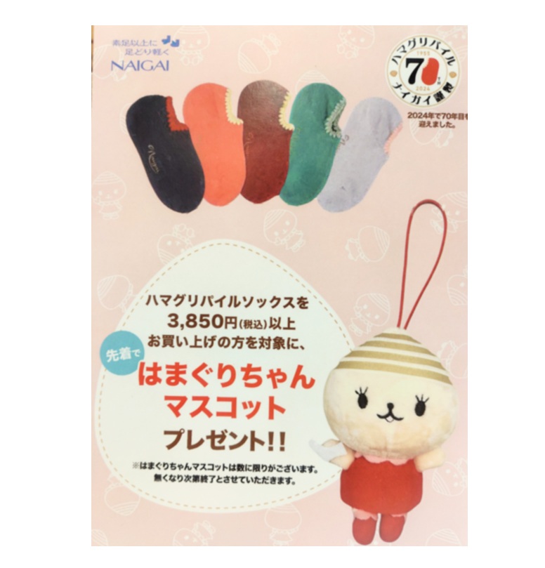 ハマグリパイルソックスを3,850円(税込)以上お買上げのお客様にノベルティを進呈いたします。