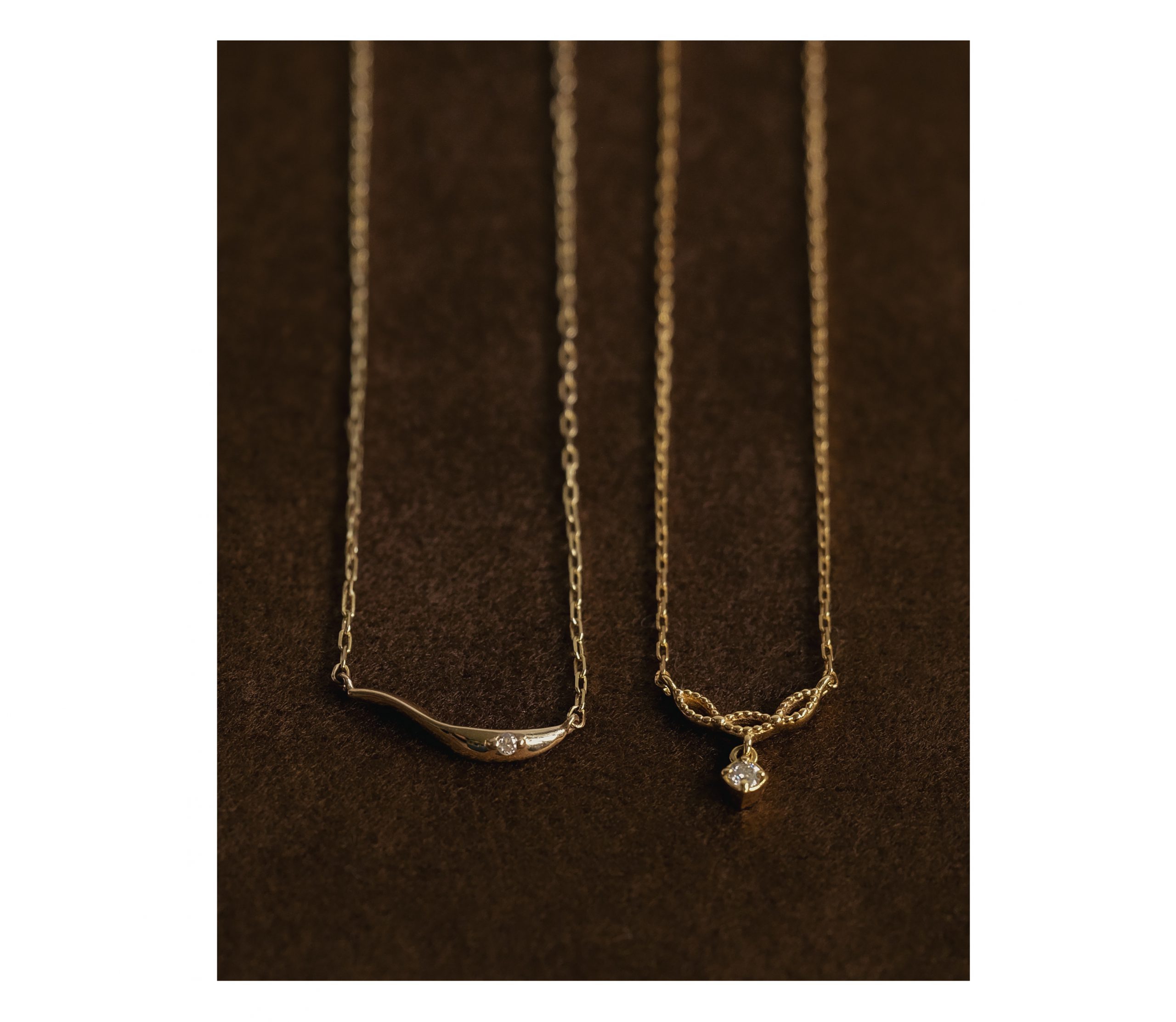 ひねりを加えたデザインが軽やかで大人っぽいネックレスや、クラシカルな表情に透け感を感じられ優美な印象を与えるネックレスなど、デコルテにさり気ない輝きを添える1つは欲しい幅広いデザインをご用意しております。