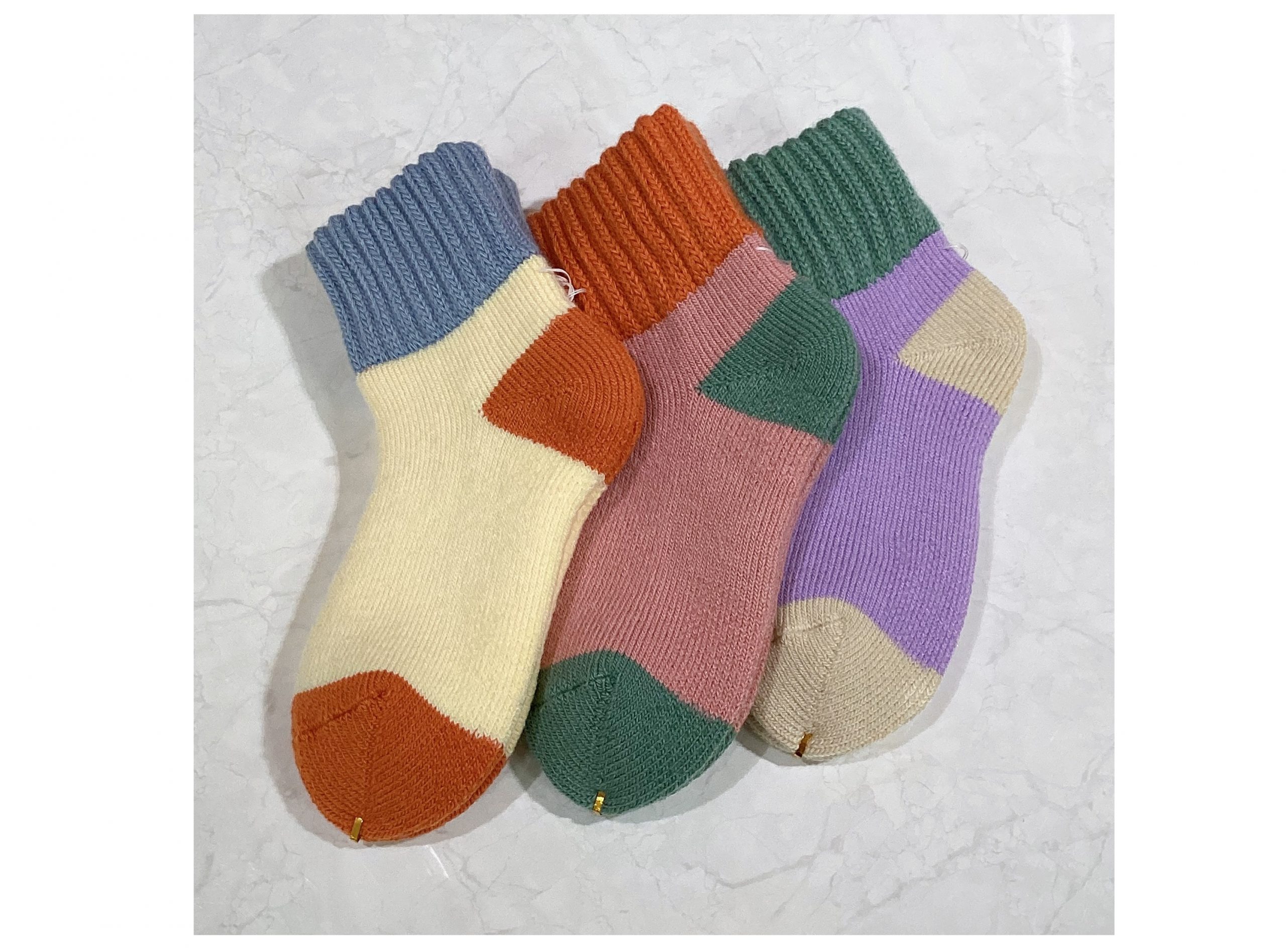 三面を切り替えた、内側パイル起毛のソフトであたたかいルームソックス。