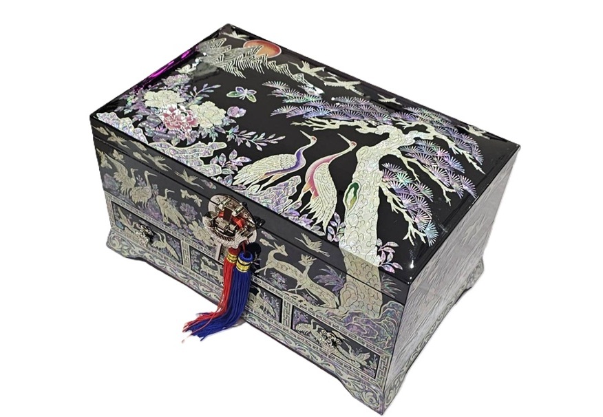 アワビや夜光貝・白蝶貝などの貝の輝く部分をはめ込んで漆塗りをした古代からある装飾技法の螺鈿の宝石箱や小物入れなどの雑貨を多数ご用意しました。