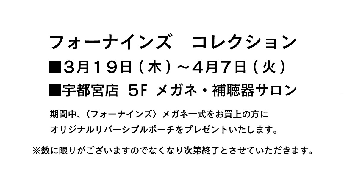 JEWELRY&ART 2026.03.19[木] - 2026.04.07[火] <メガネ・補聴器サロン>フォーナインズ コレクション 5F メガネ・補聴器サロン