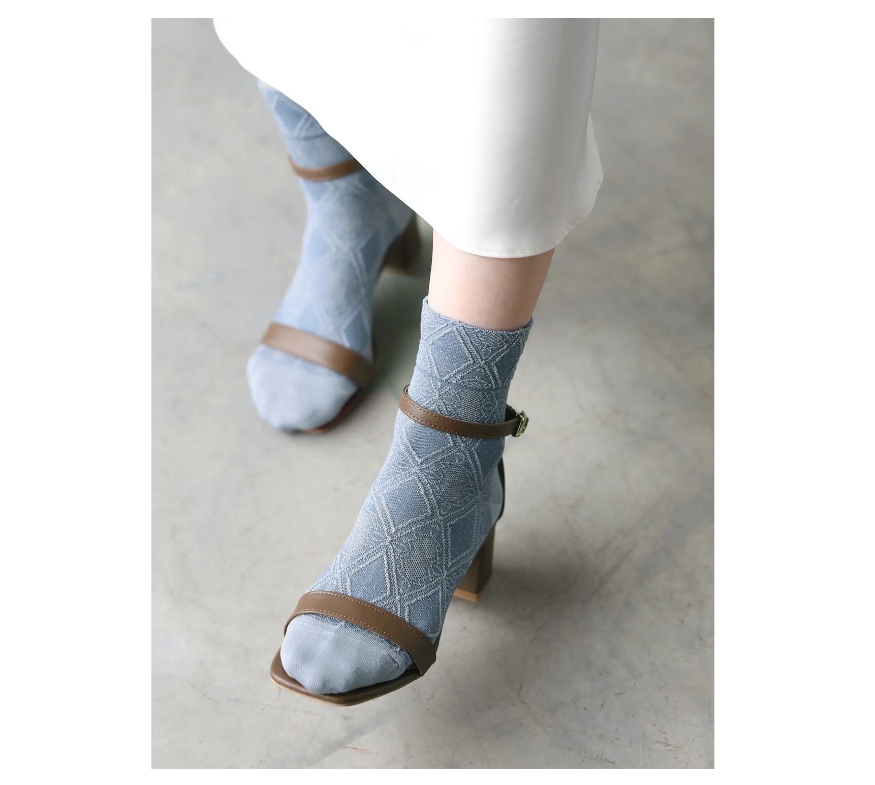 立体感の出るフロート編みでアンティークのハンカチを表現した一足。