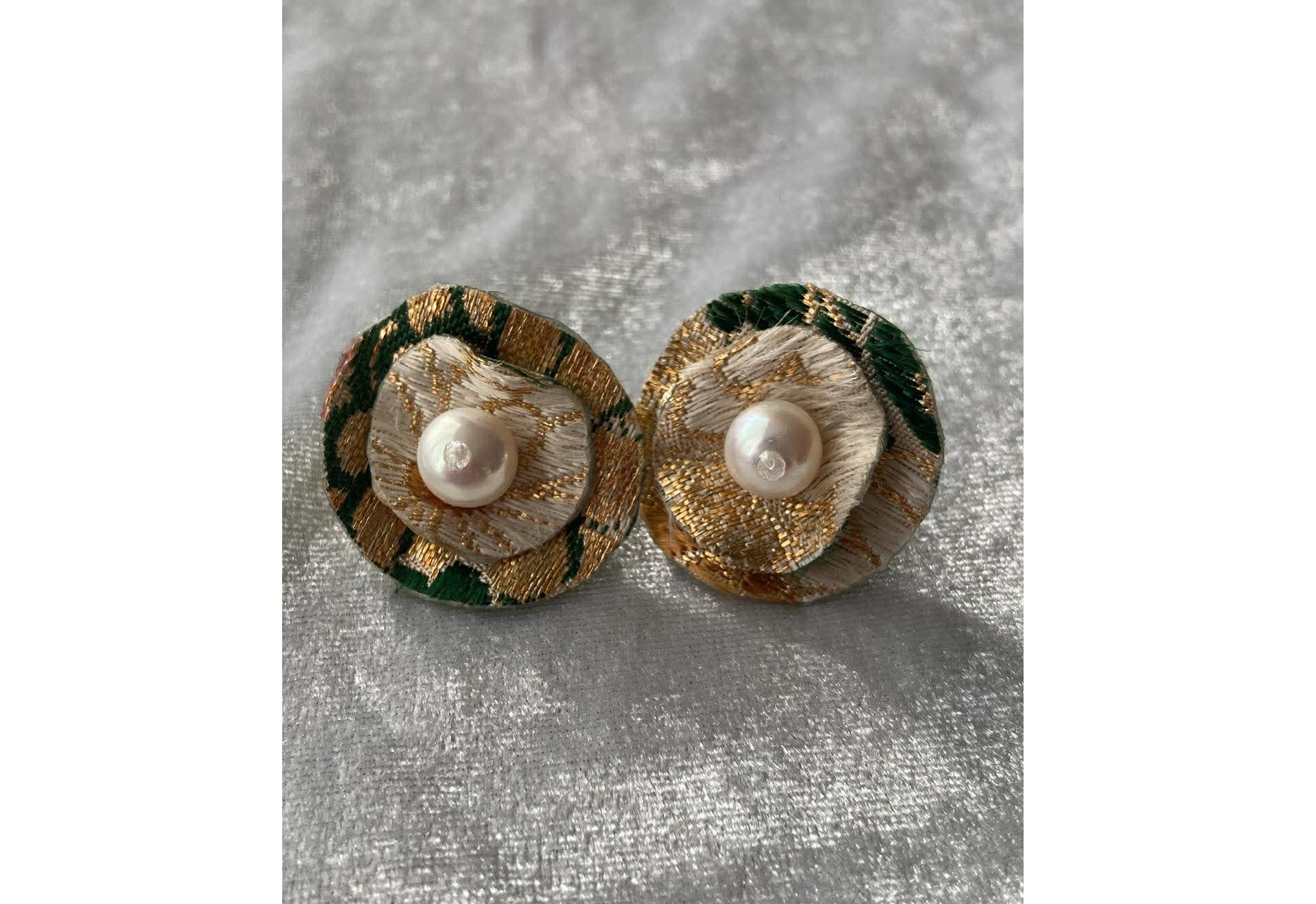 帯地や淡水パール、ビーズを使用したアクセサリーです。