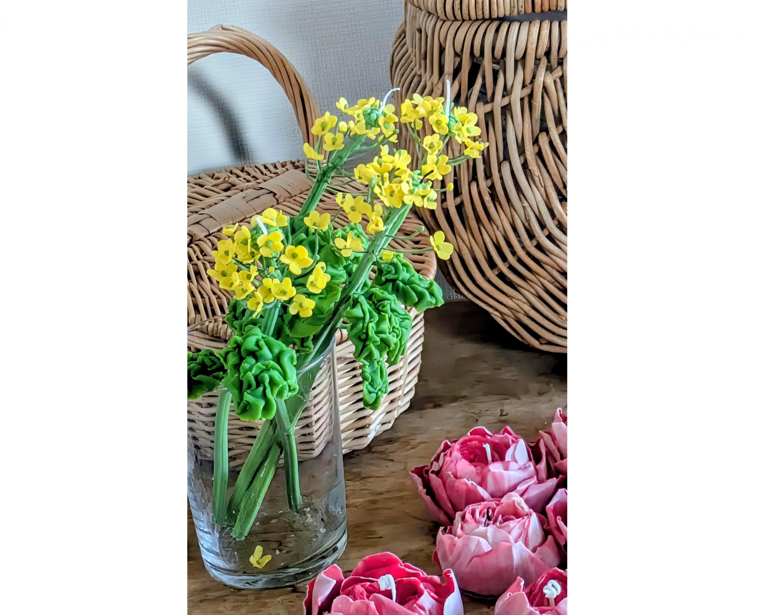 蜜蠟、木綿芯、ワイヤーを使用し、菜の花を丁寧に表現したキャンドルです。