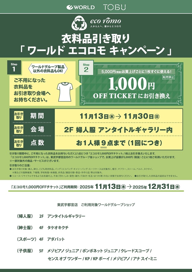 LADIES ITEM / LIVING&KIDS / MENS&SPORTS <ワールド>エコロモキャンペーン