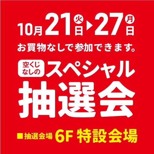 LINEにて配信された抽選券を、6F 特設会場でご呈示いただくと、上記お買上げ抽選会に1回ご参加いただけます。