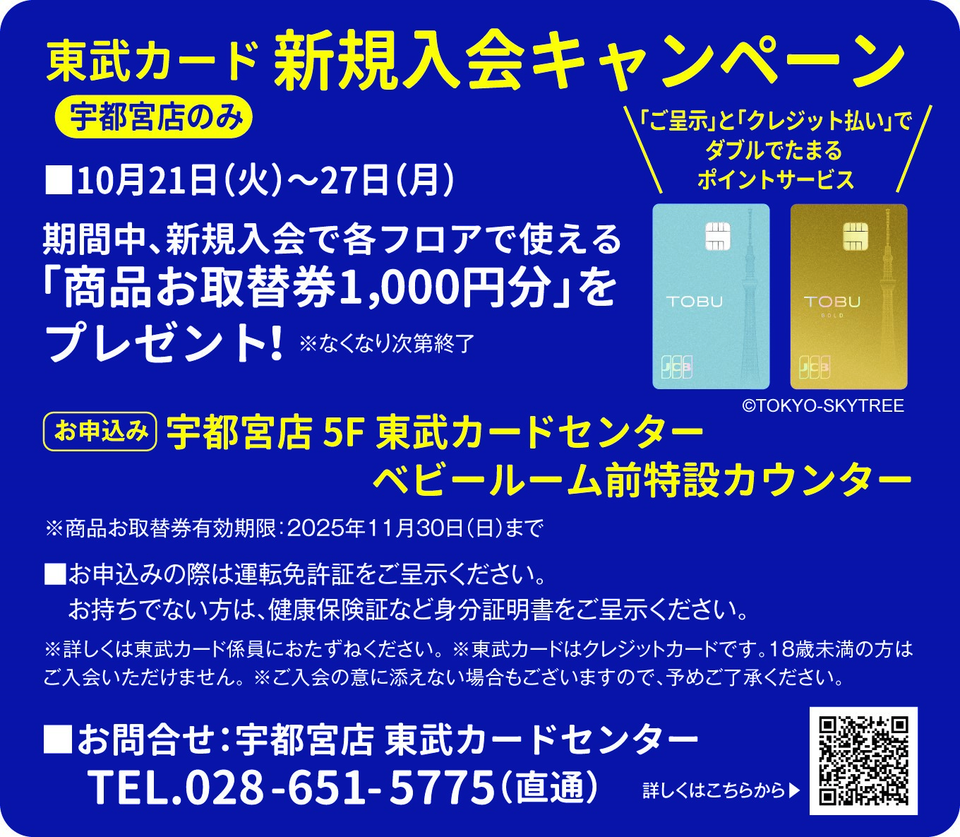 東武宇都宮百貨店友の会・東武カード・VIPカード会員様限定