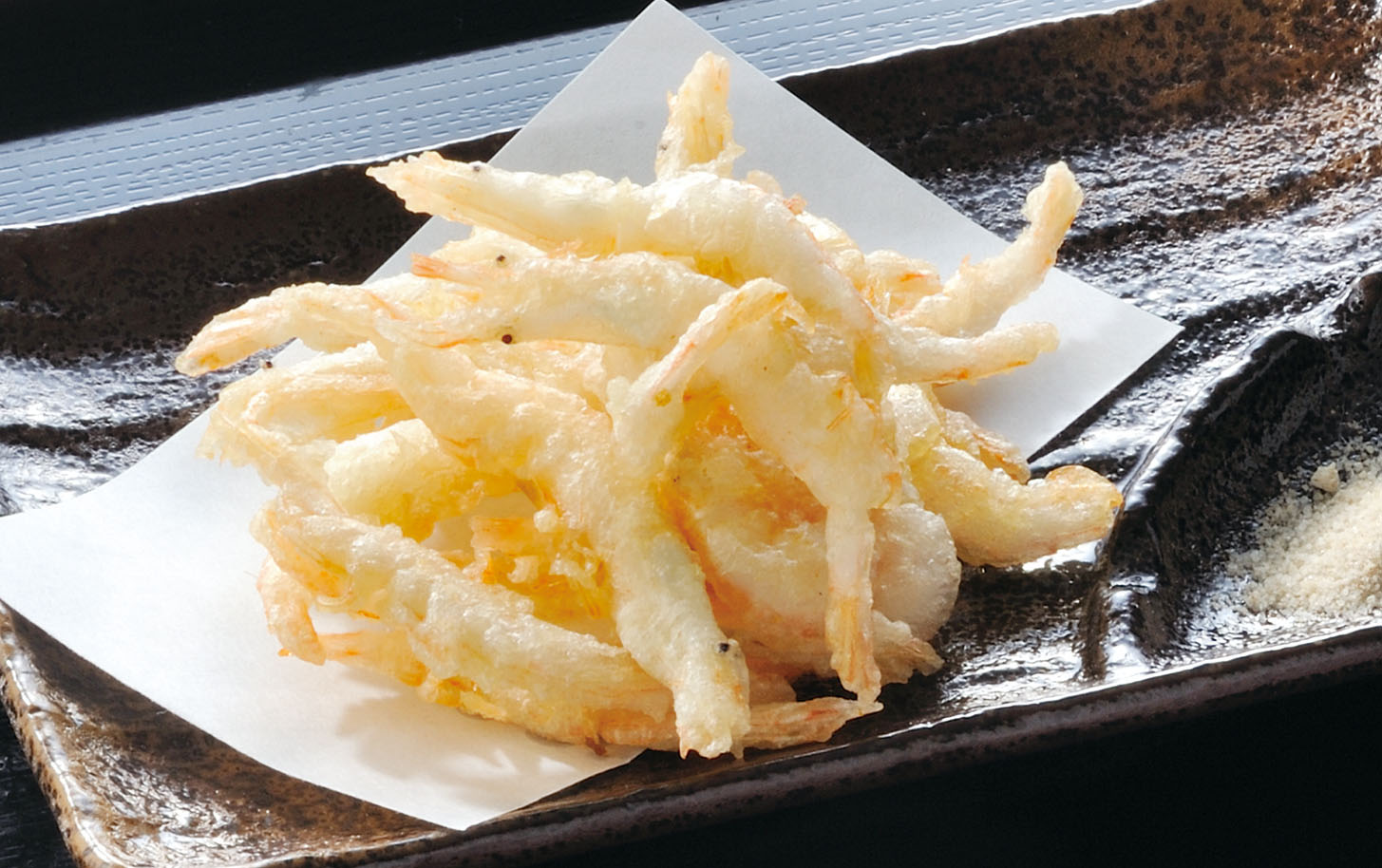 薄衣で揚げた白えびの繊細な甘さとサクサクとした食感をお楽しみいただけます。