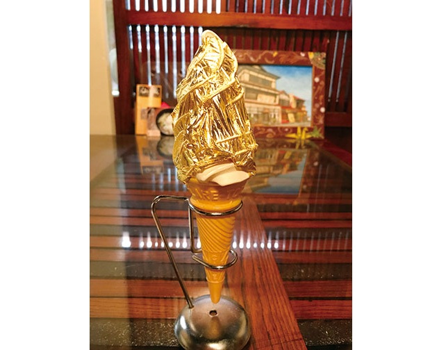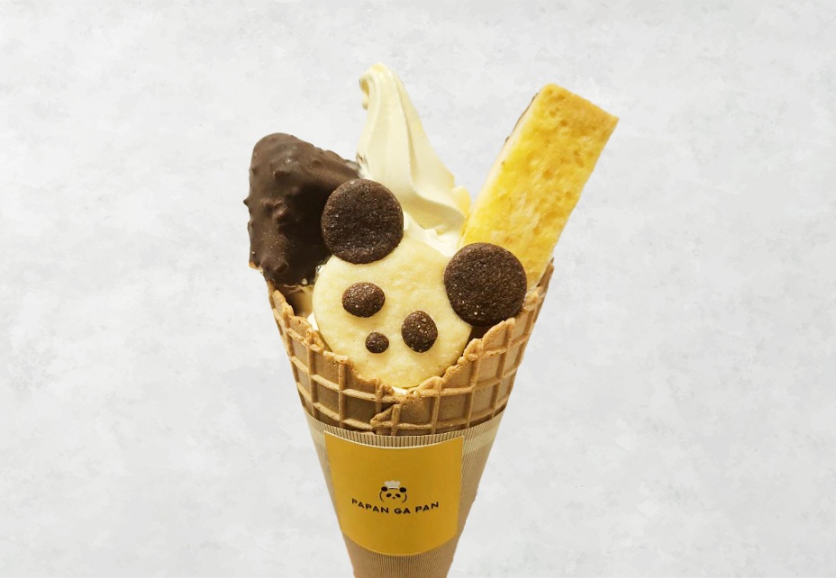 ソフトクリームに、パンダ型クッキー、フレンチトーストを添えた、東武限定商品。