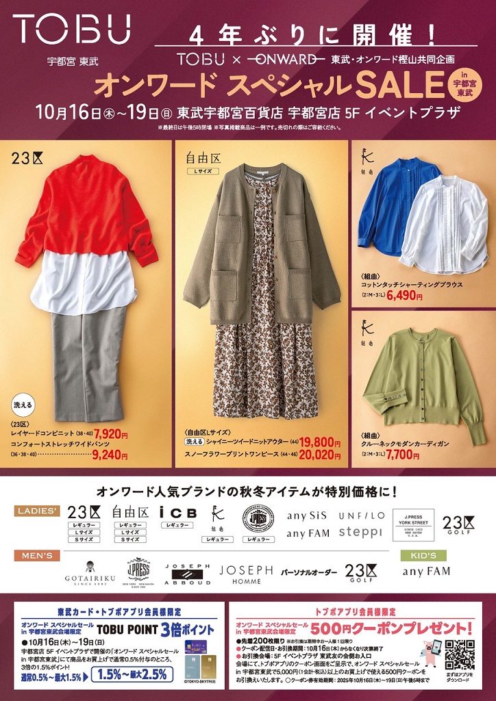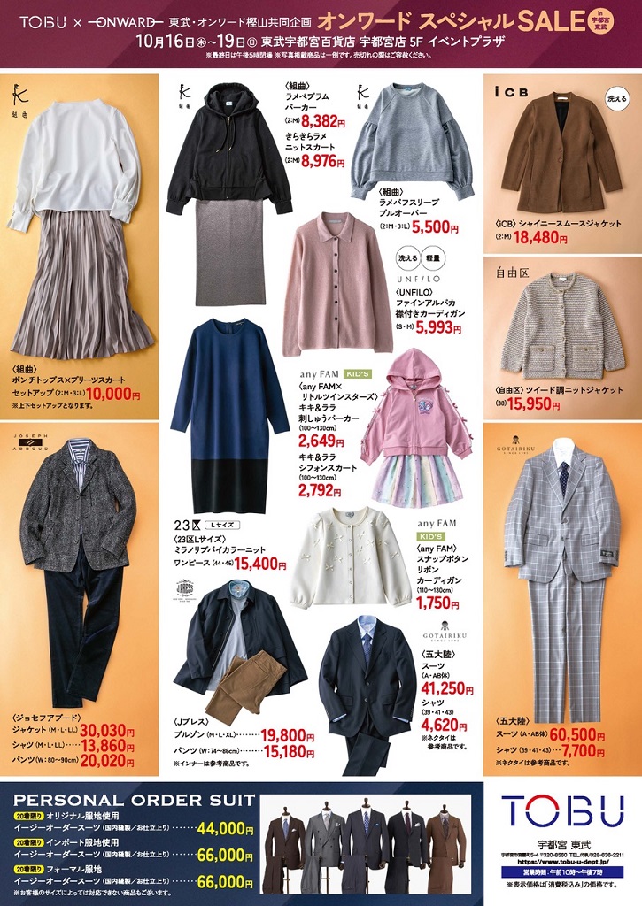 2025.10.16[木] - 2025.10.19[日] オンワードスペシャルSALE in 宇都宮東武 ※最終日は午後5時閉場