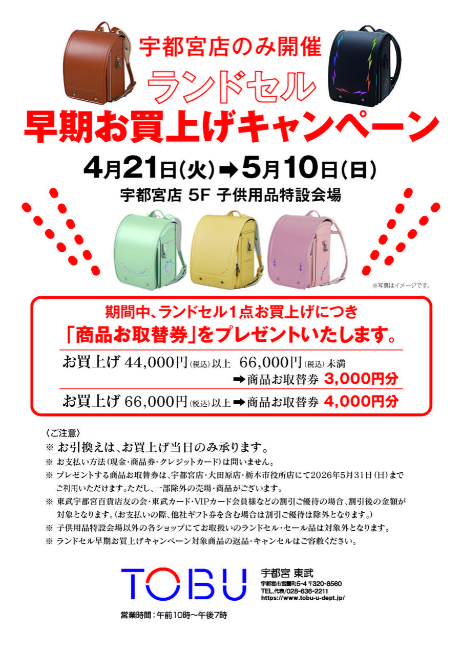 ランドセル早期お買上げキャンペーン